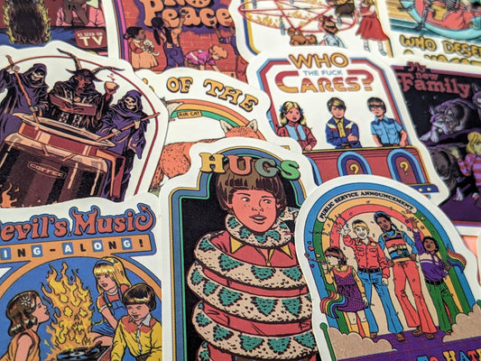 Satan/Satire/Horror Sticker Set - Vintage Style Funny Parody Decal Stickers, Retro Throwback Artwork, Halloween, Spooky Vibes, Horror Movies