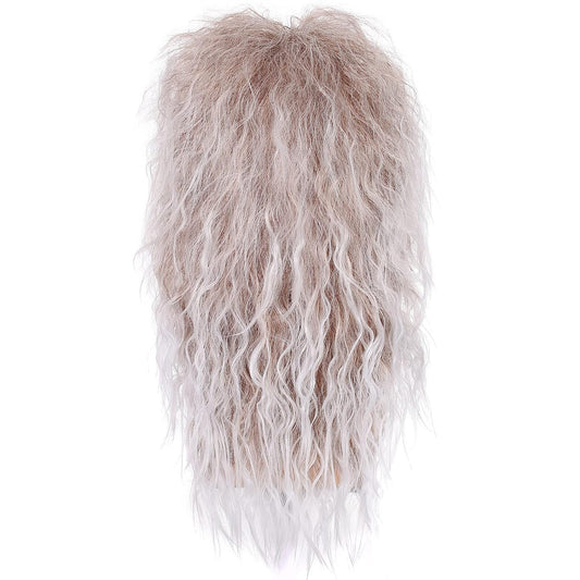 Heavy Metal ROCKER WIG 1980s Hair For Men Long Curly Silver Synthetic Glam Rocker Throwback Retro Look Perfect for Halloween, Cosplay, Costume