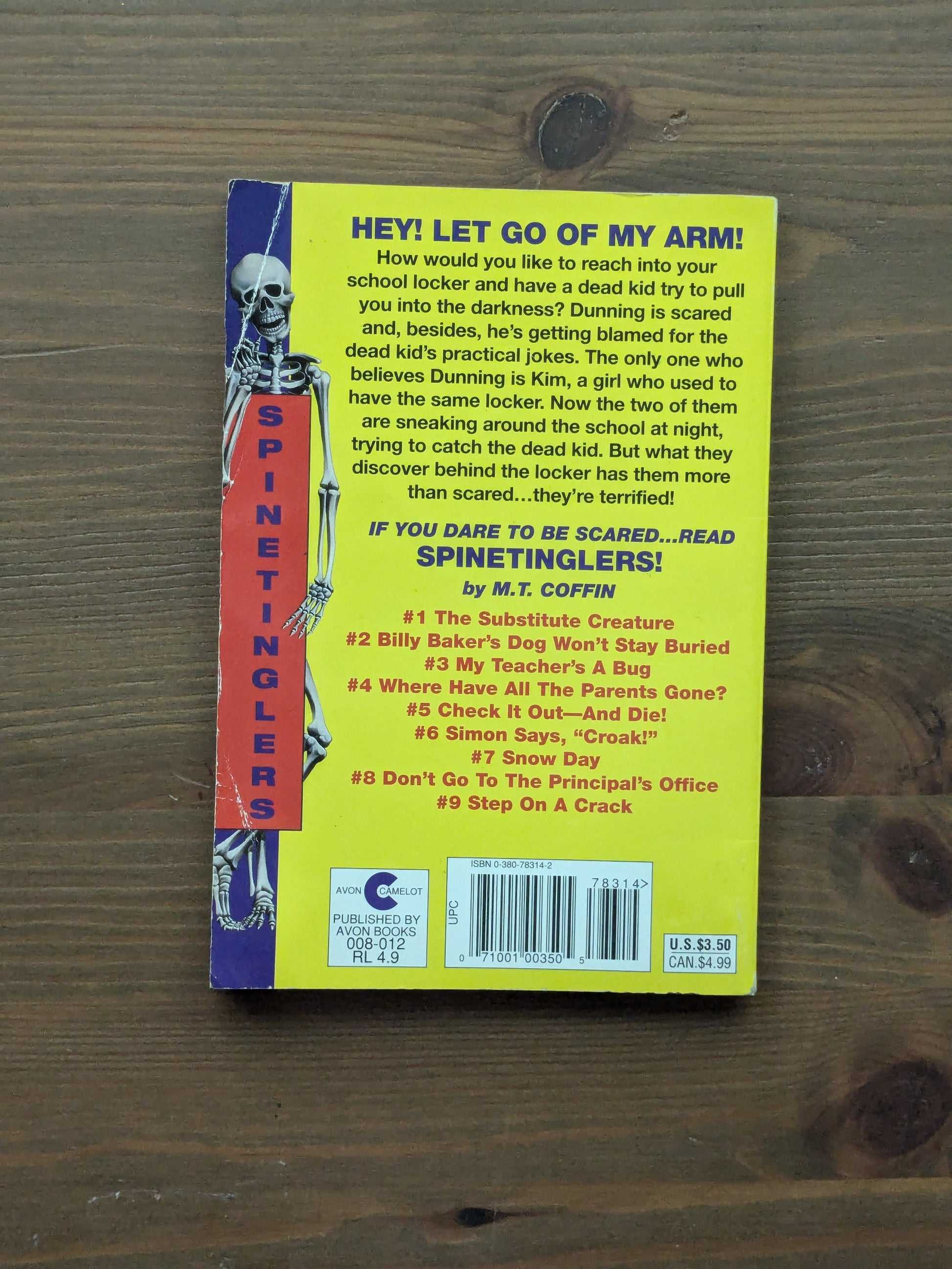 How would you like to reach into your school locker and have a dead kid try to pull you into the darkness? Dunning is scared and, besides, he's getting blamed for the dead kid's practical jokes. The only one who believes Dunning is Kim, a girl who used to have the same locker. Now the two of them are sneaking around the school at night, trying to catch the dead kid. But what they discover behind the locker has them more than scared. . .they're terrified!