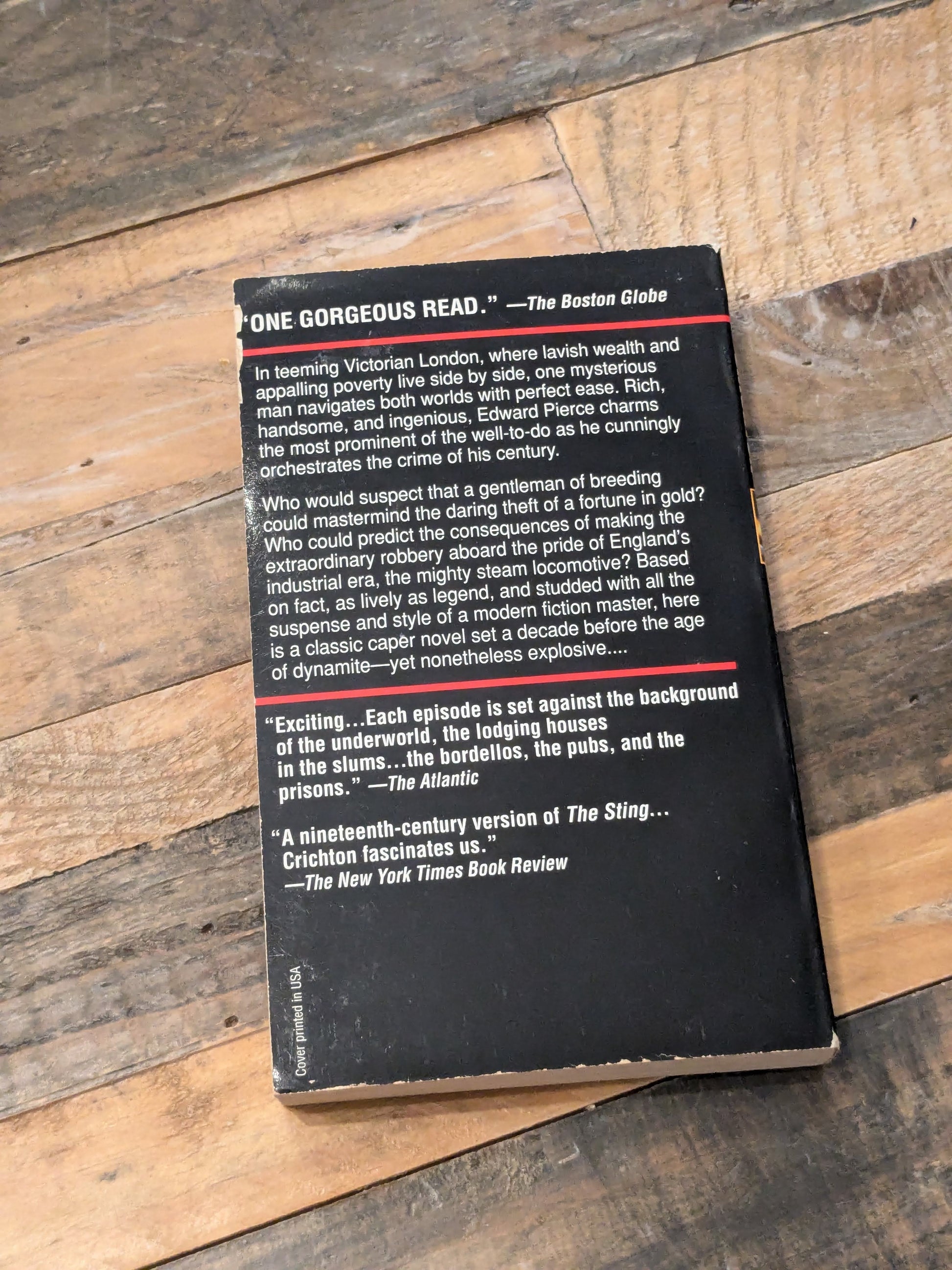 Lavish wealth and appalling poverty live side by side in Victorian London -- and Edward Pierce easily navigates both worlds. Rich, handsome, and ingenious, he charms the city's most prominent citizens even as he plots the crime of his century, the daring theft of a fortune in gold. But even Pierce could not predict the consequences of an extraordinary robbery that targets the pride of England's industrial the mighty steam locomotive. Based on remarkable fact, and alive with the gripping suspense, surprise, and authenticity that are his trademarks, Michael Crichton's classic adventure is a breathtaking thrill-ride that races along tracks of steel at breakneck speed.